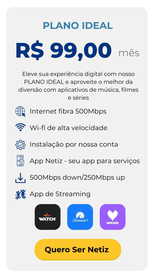 Conheça os outros serviços de conectividade e tecnologia da Netiz. Entre em contato conosco.